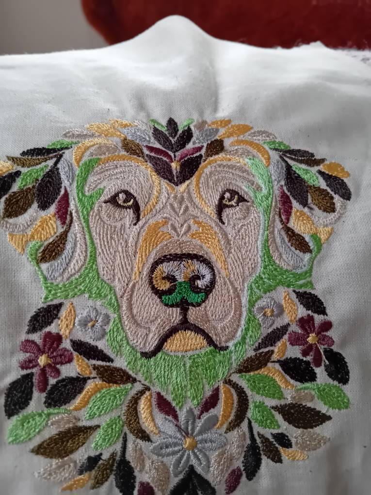 Celebrate the beauty of animals and nature with this stunning floral dog head embroidery design! Perfect for creating unique gifts, home decor, or pet-themed accessories.
