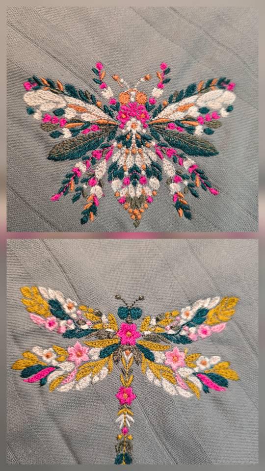 A beautifully detailed machine embroidery design set featuring elegant insects created with floral and leaf patterns. This set includes: