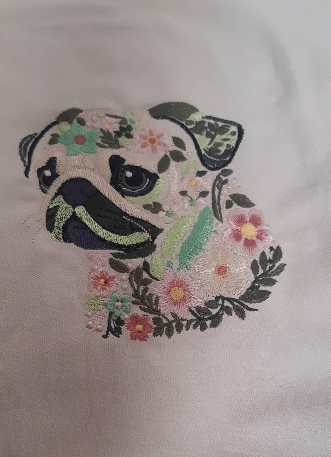 Whether you're a proud pug parent 🐕, a dog lover 🐾 or a floral art admirer 🌸—this unique machine embroidery file is for you!