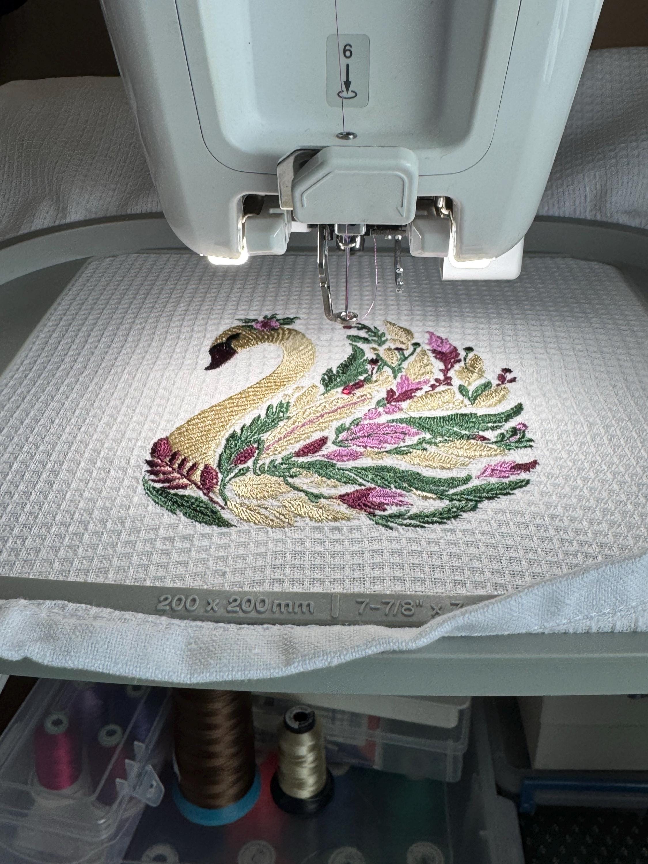 Beautiful Floral Swan Machine Embroidery β Multi-Size Digital Design for Embroidery Machines