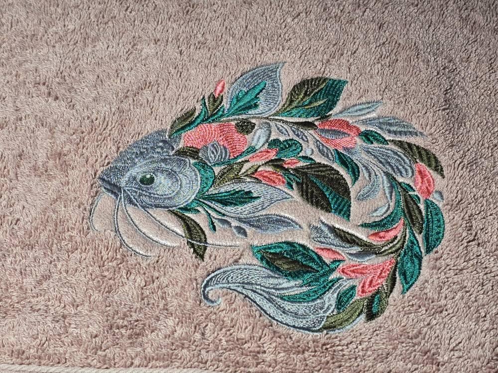 🎣 Floral Catfish Embroidery Design – Botanical Elegance for Your Machine! 🌿