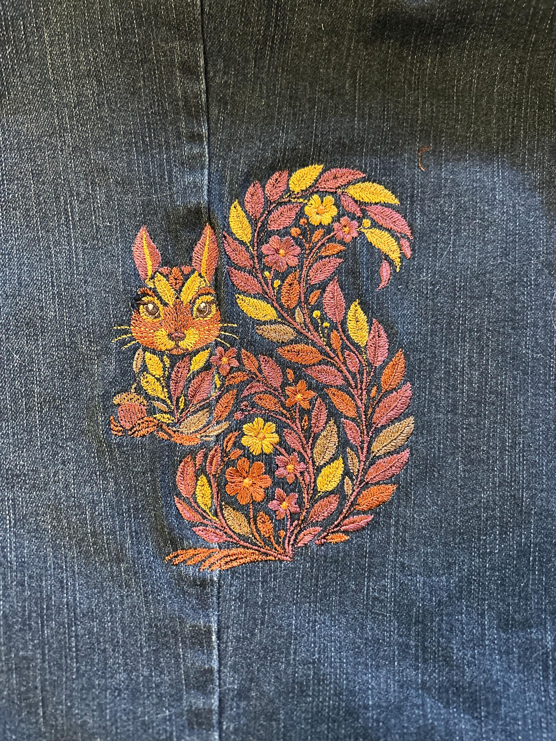 🎨 Artistic Fall Look: The intricate embroidery captures the true essence of fall with natural details and rich colors. A must-have for anyone who loves nature, squirrels, or fall aesthetics! 🍂