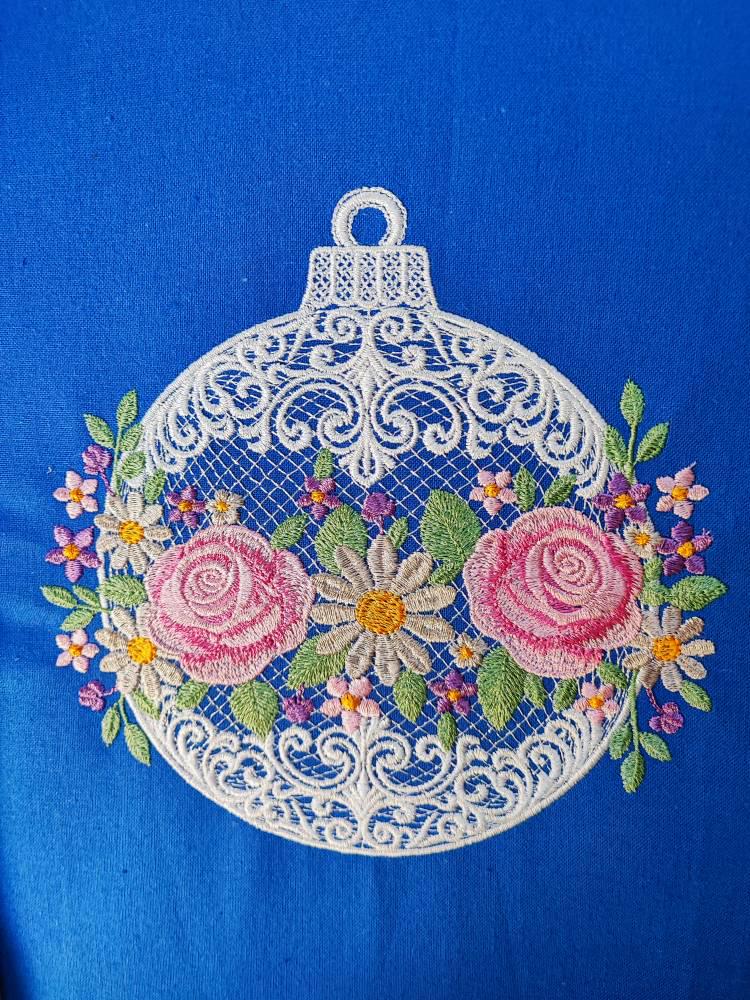 Floral Christmas Ornament Embroidery Design | Lace Ball with Roses | Holiday Machine Embroidery File DST PES EXP VP3 JEF