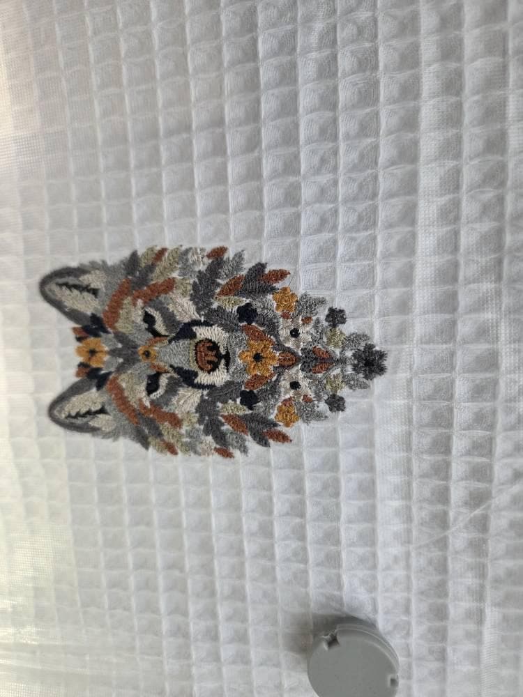 Bring warm fall magic to your projects with this autumn wolf embroidery design, crafted in rich seasonal tones of sienna, terracotta, bronze, peach, copper, and warm golden shades. This unique design blends a wolf silhouette with autumn leaves and floral accents, making it an eye-catching centerpiece for apparel, dΓ©cor, and nature-themed creations. ππΌπ