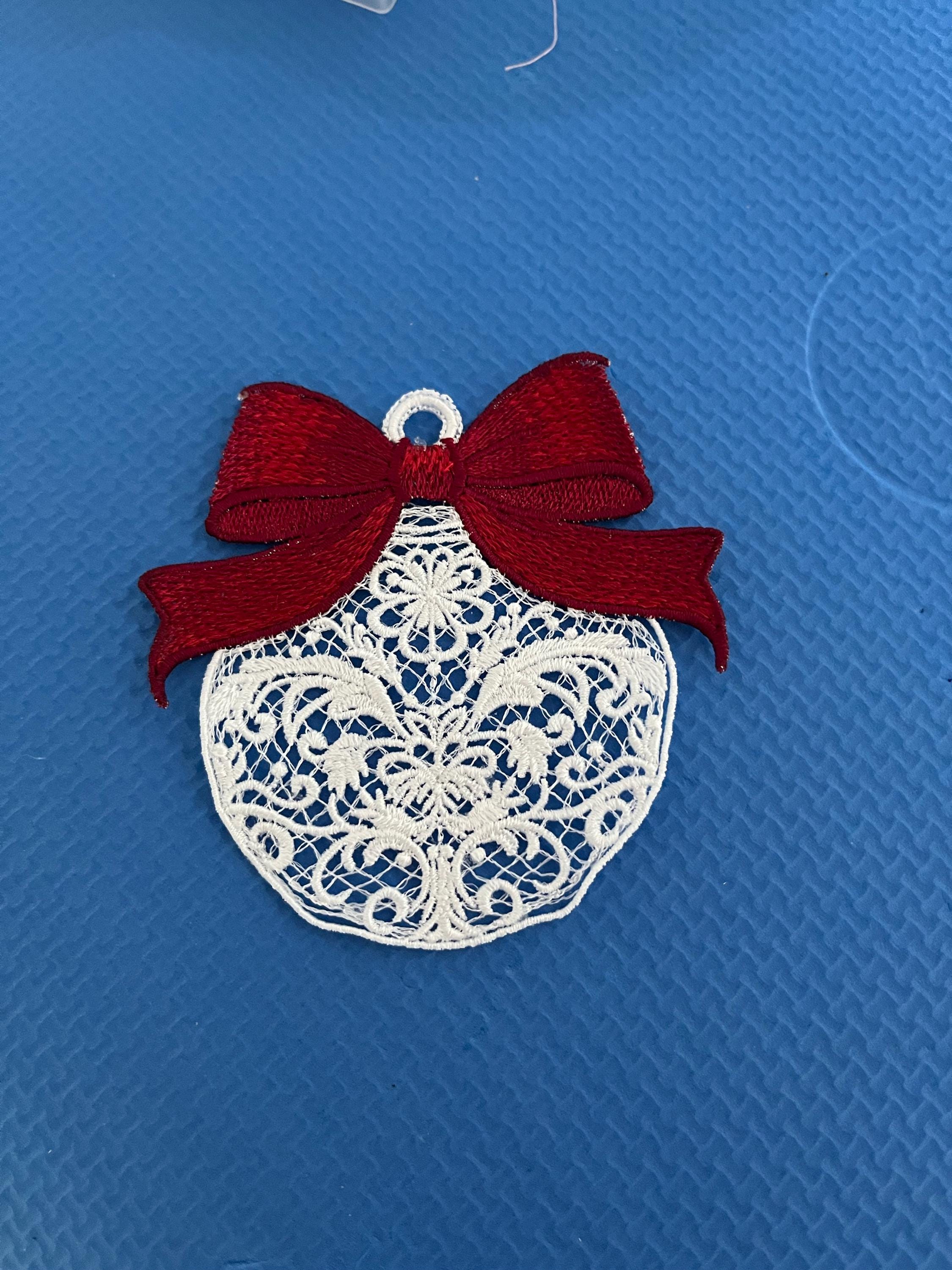 π White Christmas Ornament with Red Bow β Machine Embroidery Design πβ¨